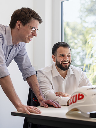 In meiner Position als Bereichsleiter gibt es eigentlich keinen typischen Arbeitsalltag mehr – jeder Tag wartet mit neuen spannenden Themen. Während der Projektakquise übernehme ich beispielsweise die Prüfung der abzuschließenden Verträge mit potenziellen Kund:innen. Dabei bin ich viel im Austausch mit unseren Kolleg:innen der Rechtsabteilung. Und natürlich spielt auch das Thema Controlling für mich als kaufmännischer Bereichsleiter eine große Rolle. Dabei stehen die jährliche Planung und kontinuierliche Überwachung der Leistungen und Ergebnisse des gesamten Bereichs im Fokus. Die aktuellen Entwicklungen der laufenden Projekte müssen dabei natürlich immer berücksichtigt werden.